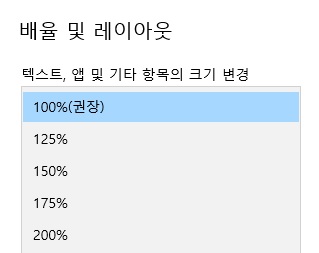 위에서 고르는 숫자는 디스플레이 설정에서 고르는 배율을 의미합니다.