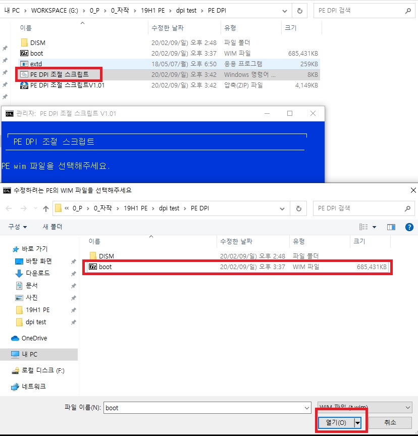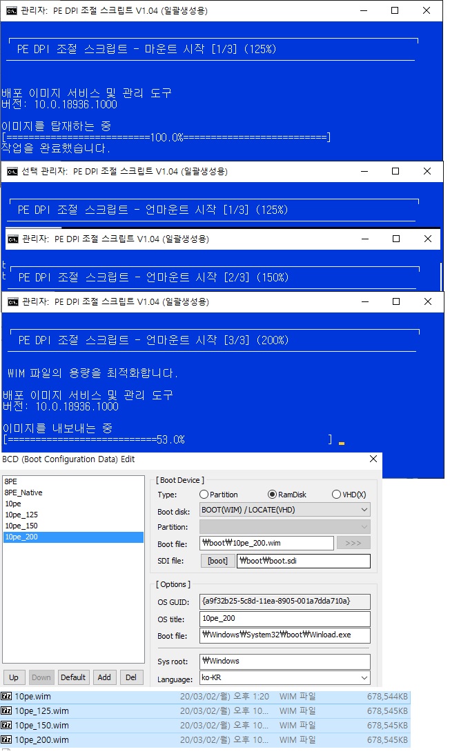 부팅 목록의 이름은 원본 wim파일의 이름 뒤에 배율을 붙여서 정해집니다