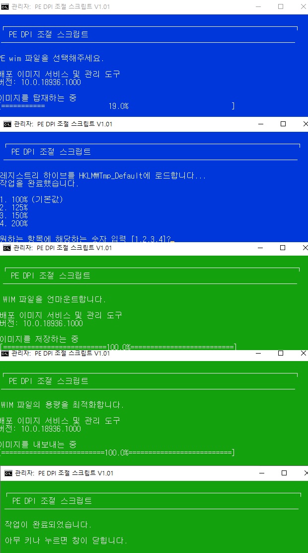 주의 : 이 스크립트가 시작될 때 마운트되어있는 모든 WIm파일을 변경사항을 저장하지 않고 언마운트합니다.